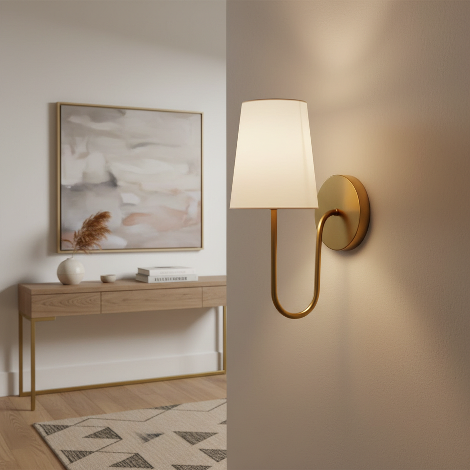 The JOSE Contemporary Provincial Wall Light is a stunning blend of timeless elegance and modern design, featuring a gracefully curved iron metal arm finished in a sophisticated aged brass. This interior wall light is topped with a classic white fabric shade that diffuses light beautifully, creating a warm and inviting atmosphere perfect for bedrooms, hallways, or living areas. Manufactured to Australian standards (240V), this high-quality fixture offers a durable metal construction and a refined aesthetic that seamlessly bridges the gap between traditional provincial charm and contemporary minimalism.