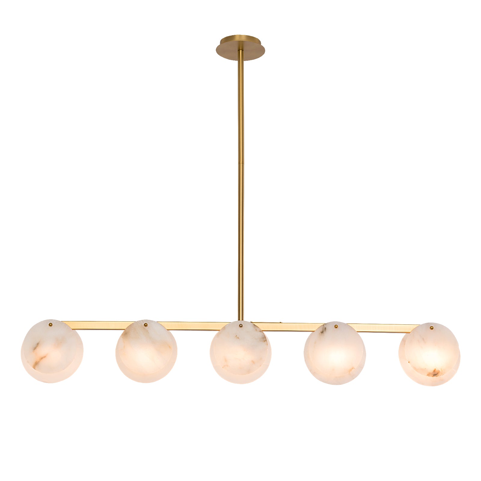 Introducing the exquisite CLAUD Modern Dining Room Chandelier, where the timeless beauty of natural snow-white alabaster stone meets the warm, sophisticated appeal of an aged brass metal body. Each stone shade is uniquely patterned with delicate brown clouding and veining, ensuring that no two fixtures are exactly alike. This chandelier is more than a light source; it's a captivating piece of art that casts a soft, ambient glow, perfect for creating an elegant and inviting atmosphere.