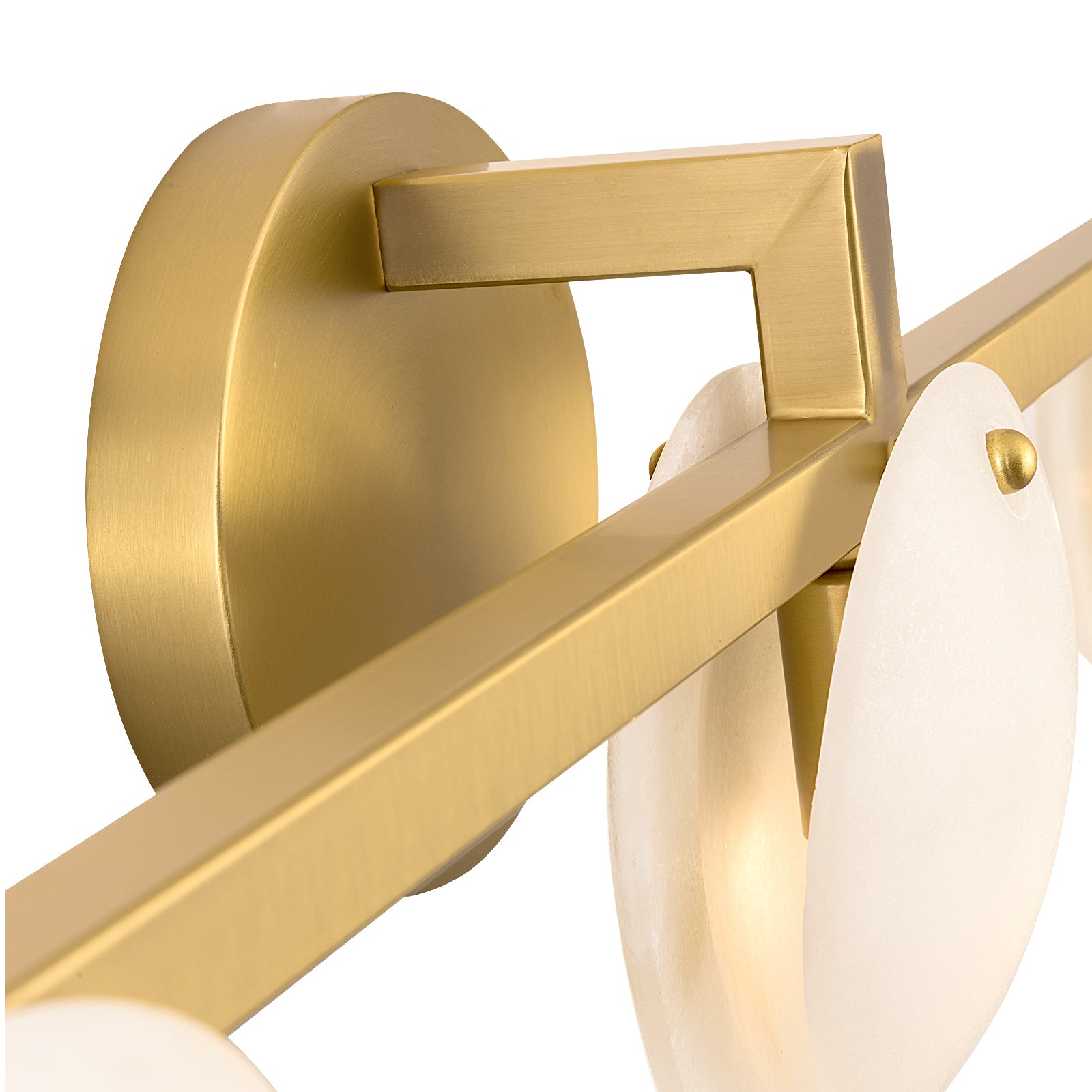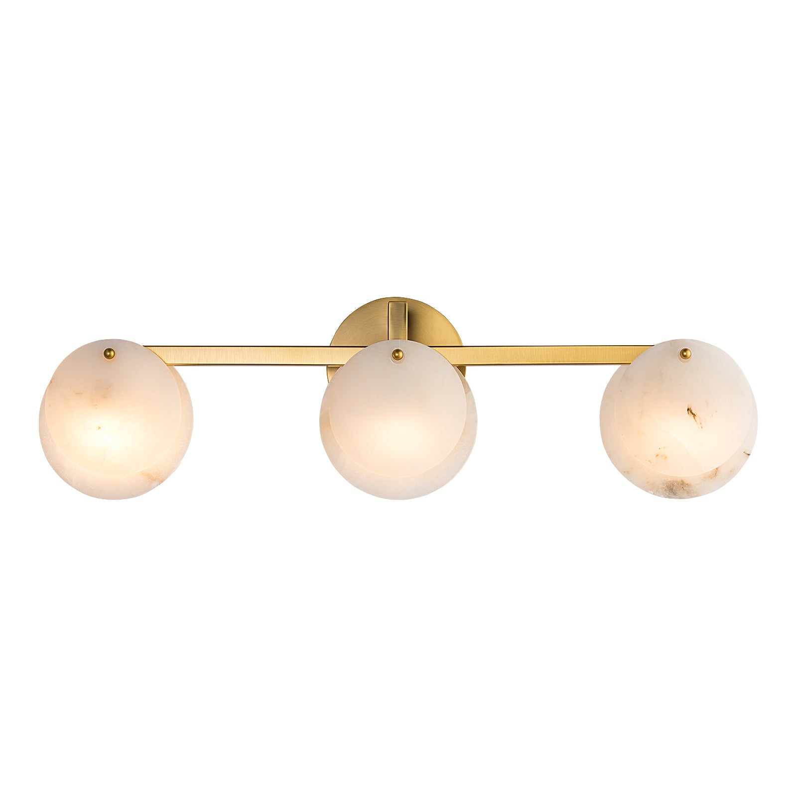 Discover the elegant design and ambient illumination of the CLAUD Modern Style Alabaster Indoor Wall Light. Crafted with an aged brass metal bracket, this sophisticated wall light enhances any interior space with its natural snow-white alabaster stone shades. Each shade features unique brown clouding and veining, ensuring that no two lights are the same and adding an exclusive touch to your décor.