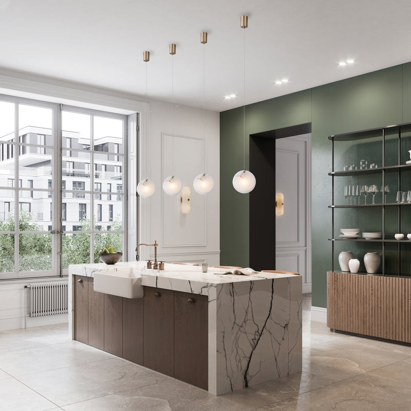 The LYON Modern Style LED Alabaster Pendant offers you a variety of shade size options. You can choose from four combinations: D150+D130, D170+D150, D190+D170, and D210+D190. The aged brass finish on the ceiling plate and metalware adds an element of timeless elegance, enhancing the overall aesthetic of the pendant. With a mounting plate of diameter 60mm and height 90mm, and a weight of 2.5kgs, it's a well - constructed lighting fixture. But be sure to handle it with care as the alabaster stone is fragile.